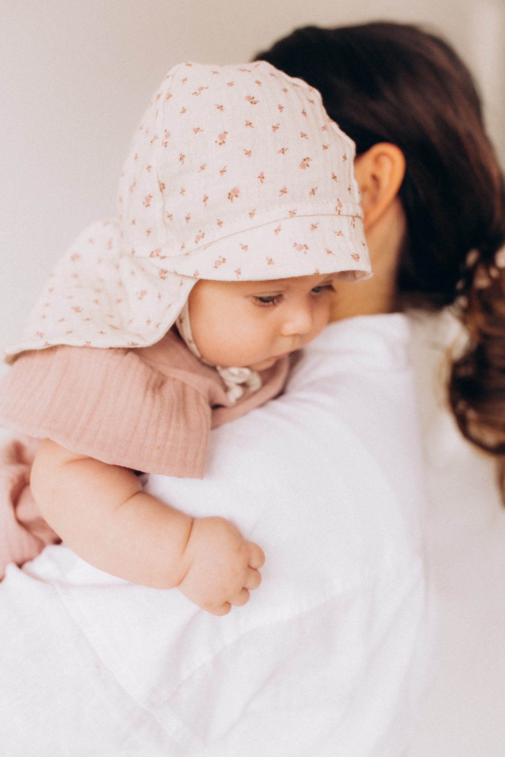 Mit diesem Sonnenhut aus Musselin ist dein Baby gut vor der Sonne geschützt und sieht dabei auch noch gut aus.