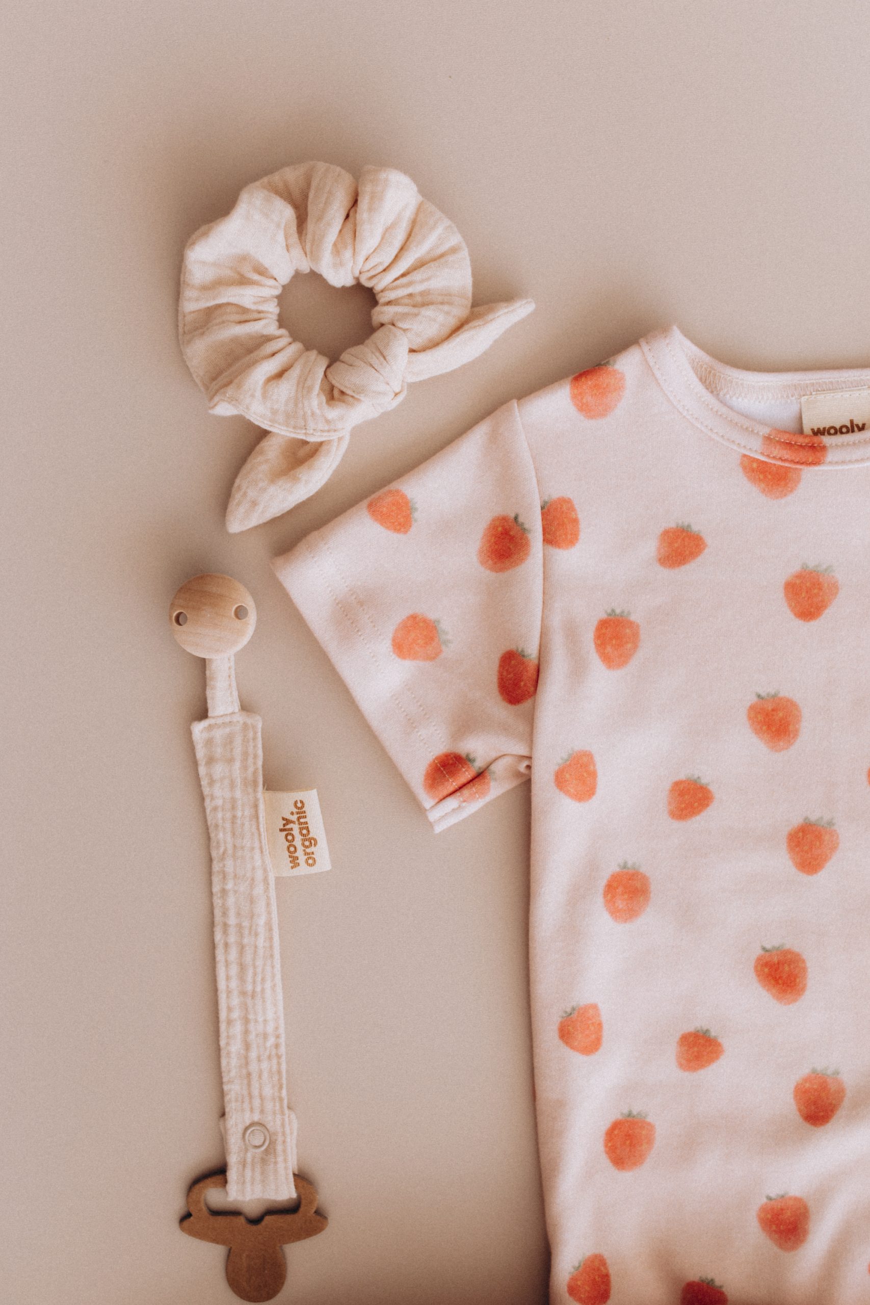 Süßer Wickelbody mit sommerlichem Erdbeer-Muster.