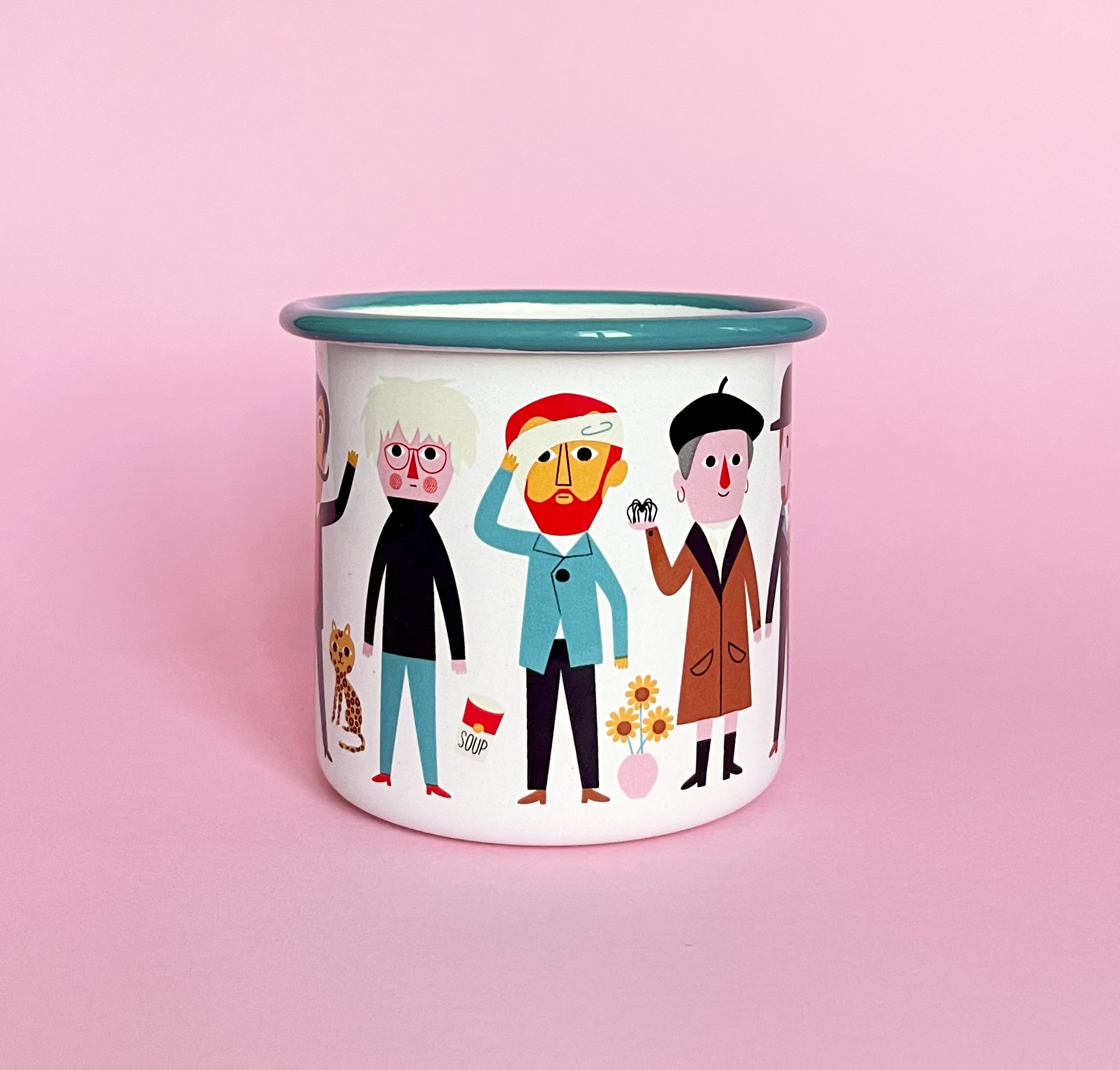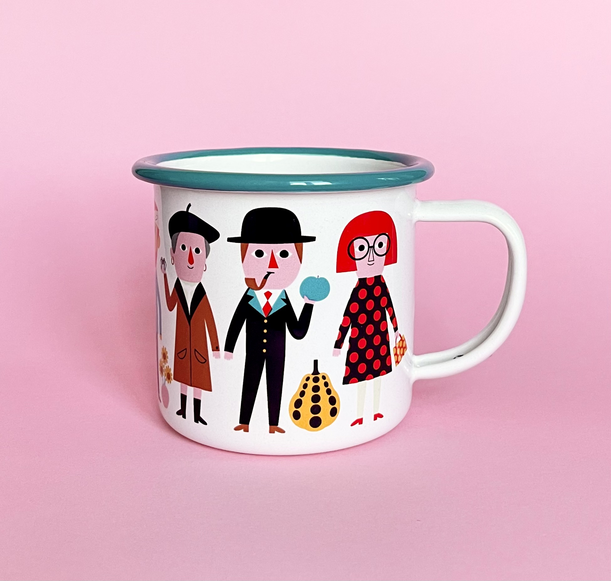 Wunderschöner Emaillebecher der schwedischen Designfirma Omm Design mit buntem Retromotiv für alle, die Kunst mögen.