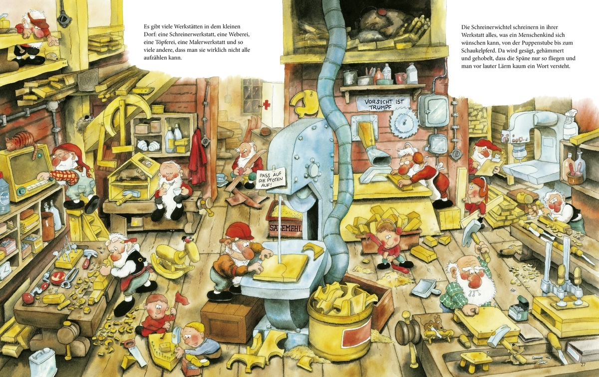 Wo wohnt der Weihnachtsmann? Was wünscht er sich selbst zu Weihnachten? Und was macht der Weihnachtsmann eigentlich, wenn Weihnachten vorbei ist? Weit oben in Lappland, wo die Winter kalt und dunkel sind, liegt das Dorf Korvatunturi. Hier wohnt der Weihnachtsmann mit seinen Wichteln. Gemeinsam haben sie alle Hände voll zu tun, um die vielen Weihnachtswünsche zu erfüllen. Es wird gepinselt und geleimt, gehobelt und gedrechselt, dass die Späne nur so fliegen!