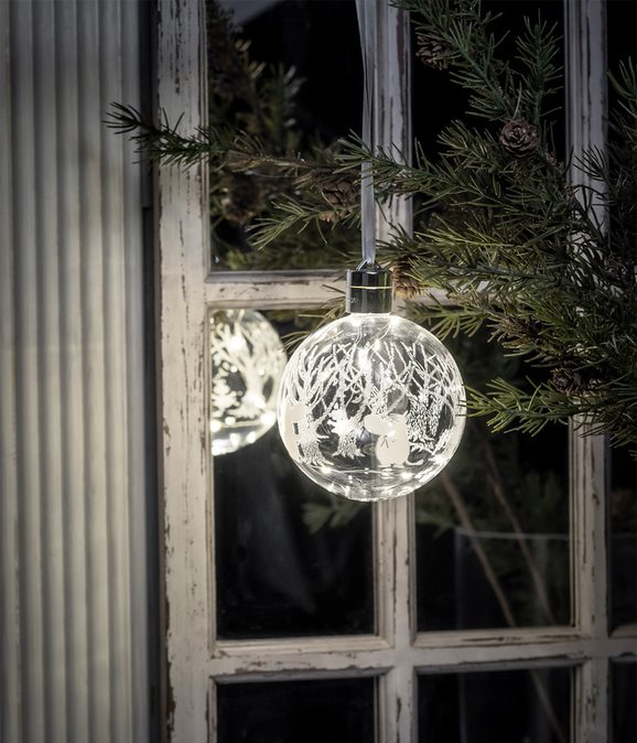 Batterie ist nicht dabei in der Lieferung. Enthält eine LED-Lichtkette. Die Kette kann nicht ausgetauscht werden. - Material: Glas - Durchmesser: 11 cm