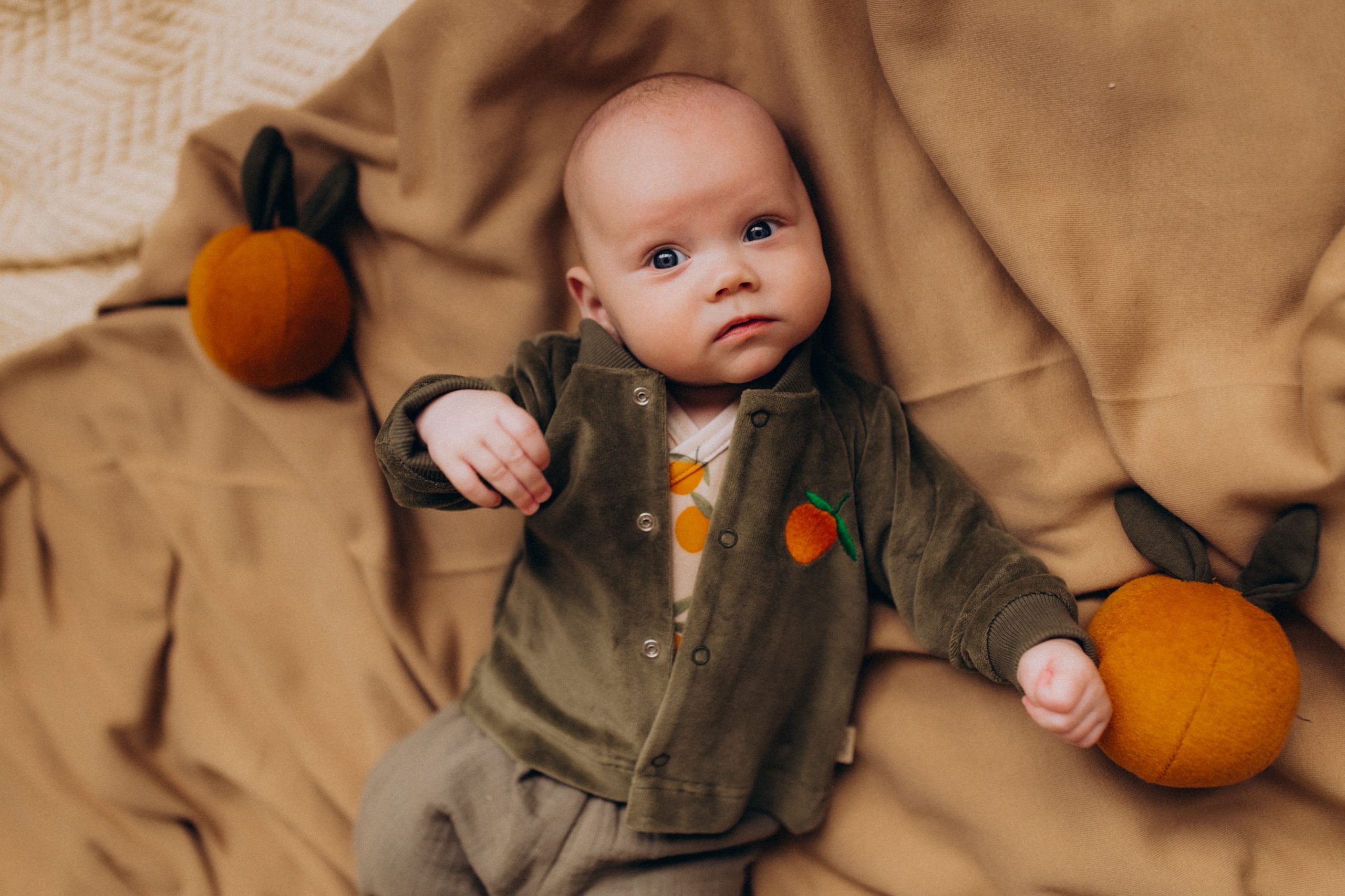 Verleihe der Garderobe deines Babys mit der bestickten Veloursjacke einen Hauch von Eleganz und Komfort. Aus weichem, luxuriösem Veloursstoff gefertigt, ist diese Jacke sanft zur Haut deines Babys und bietet gleichzeitig Wärme und Atmungsaktivität. Die bezaubernden Stickereien werten den Stil auf und machen die Jacke perfekt für den Alltag und besondere Anlässe. Mit Liebe hergestellt in Lettland (EU).