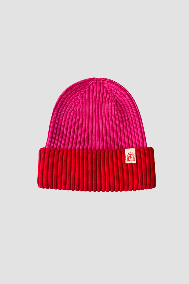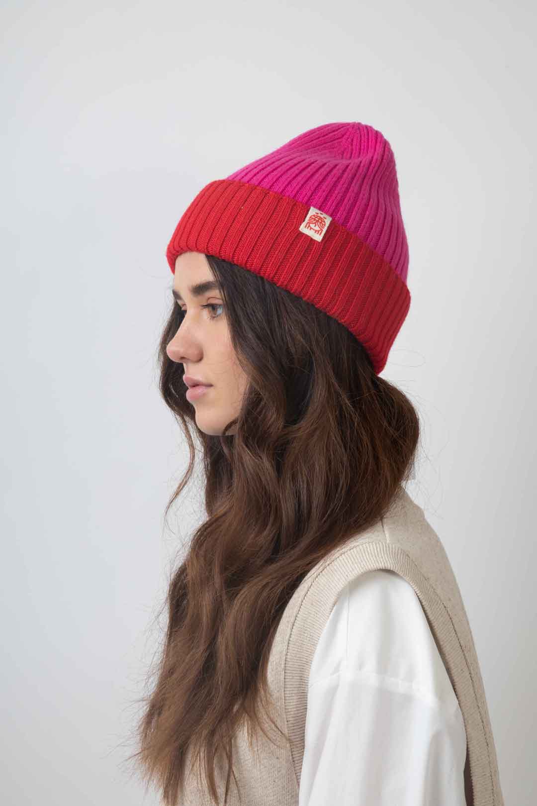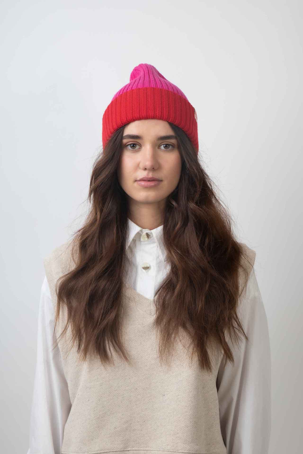 Knallbunte Strickmütze aus weicher Merinowolle.