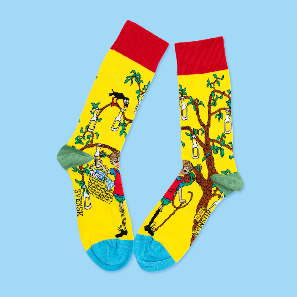 Wir nehmen dich mit in die kunterbunte Welt von Pippi Langstrumpf mit diesen fröhlichen Kindersocken aus Schweden.