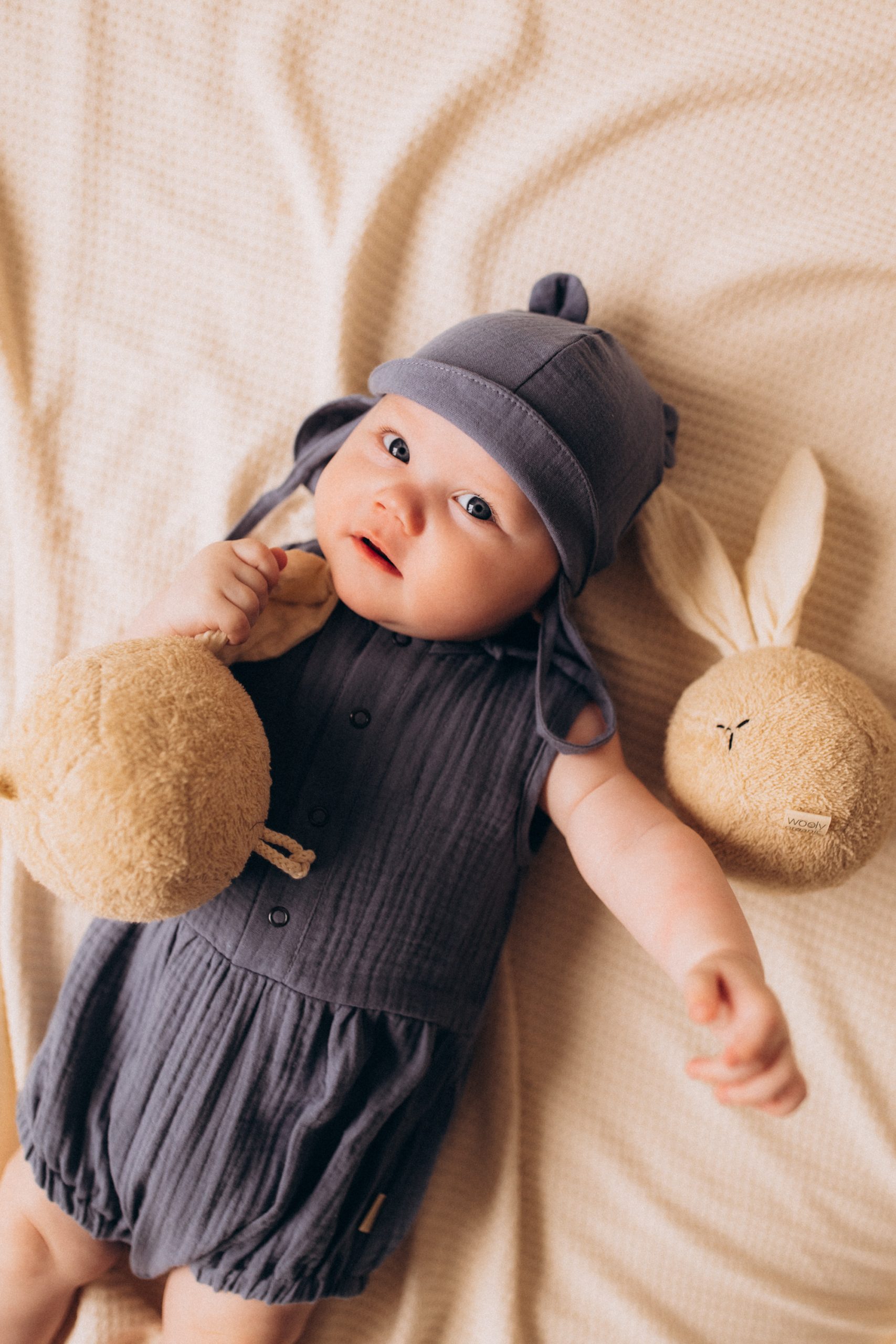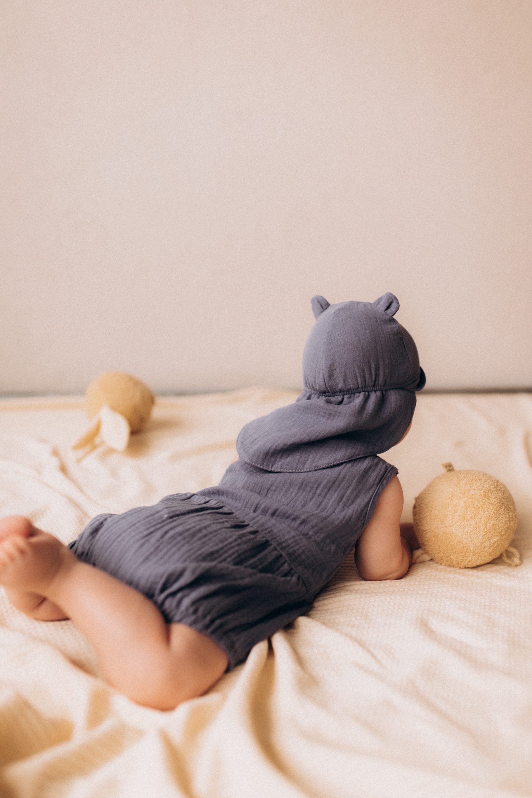 Niedlicher Sommer-Strampler aus hochwertigem, GOTS-zertifiziertem Musselin.