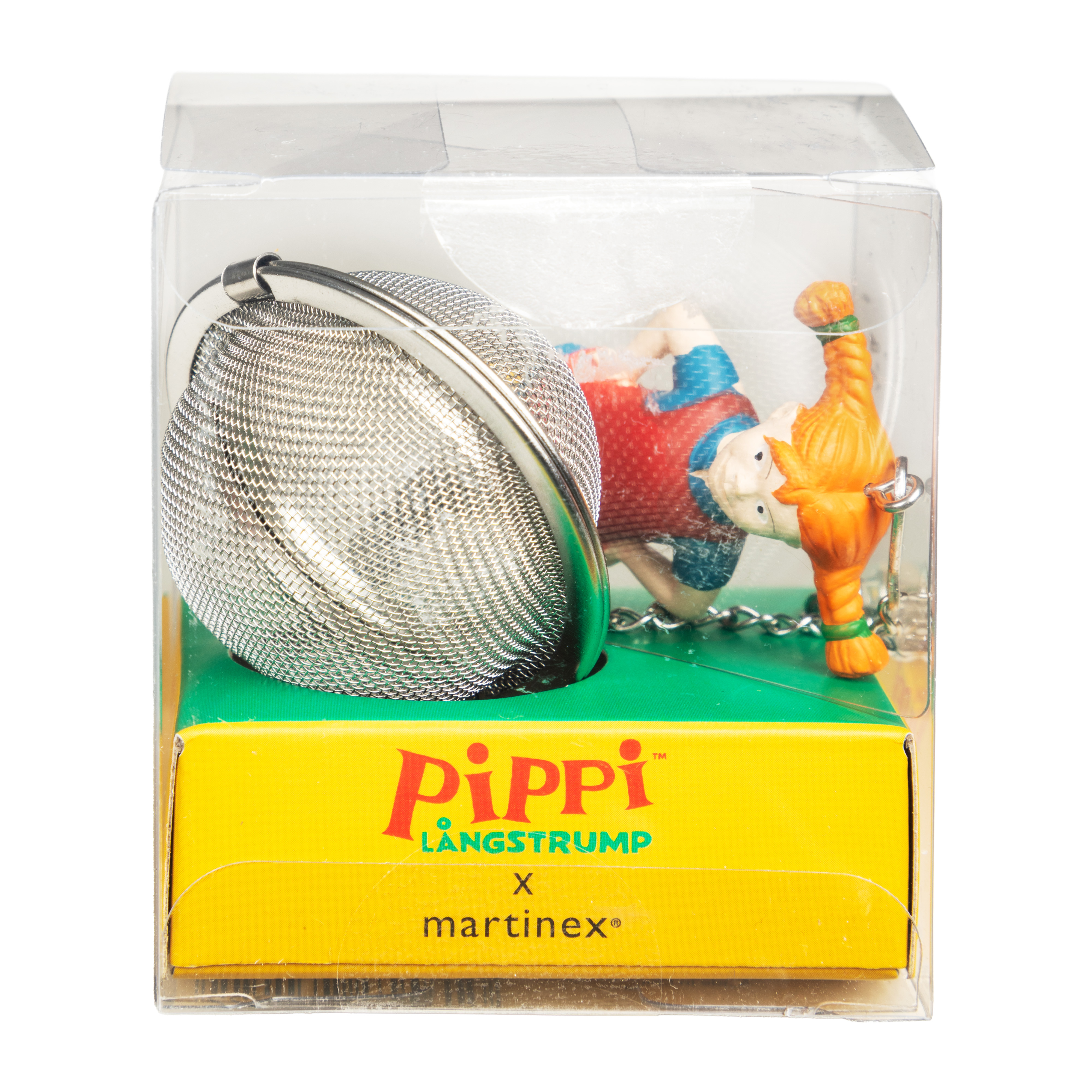Dieses Tee-Ei mit Pippi Langstrumpf  Anhänger lädt zu einem Moment der Ruhe bei einer heißen Tasse Tee ein. Einfach den Lieblings-Tee einfüllen, die Kugel schließen und in eine Teetasse mit heißem Wasser geben. Die  Pippi Langstrumpf  Figur am anderen Ende der Kette verhindert, dass der Tee-Ball während des Aufbrühens in die Tasse fällt und vereinfacht das Herausholen, wenn der Tee fertig ist.