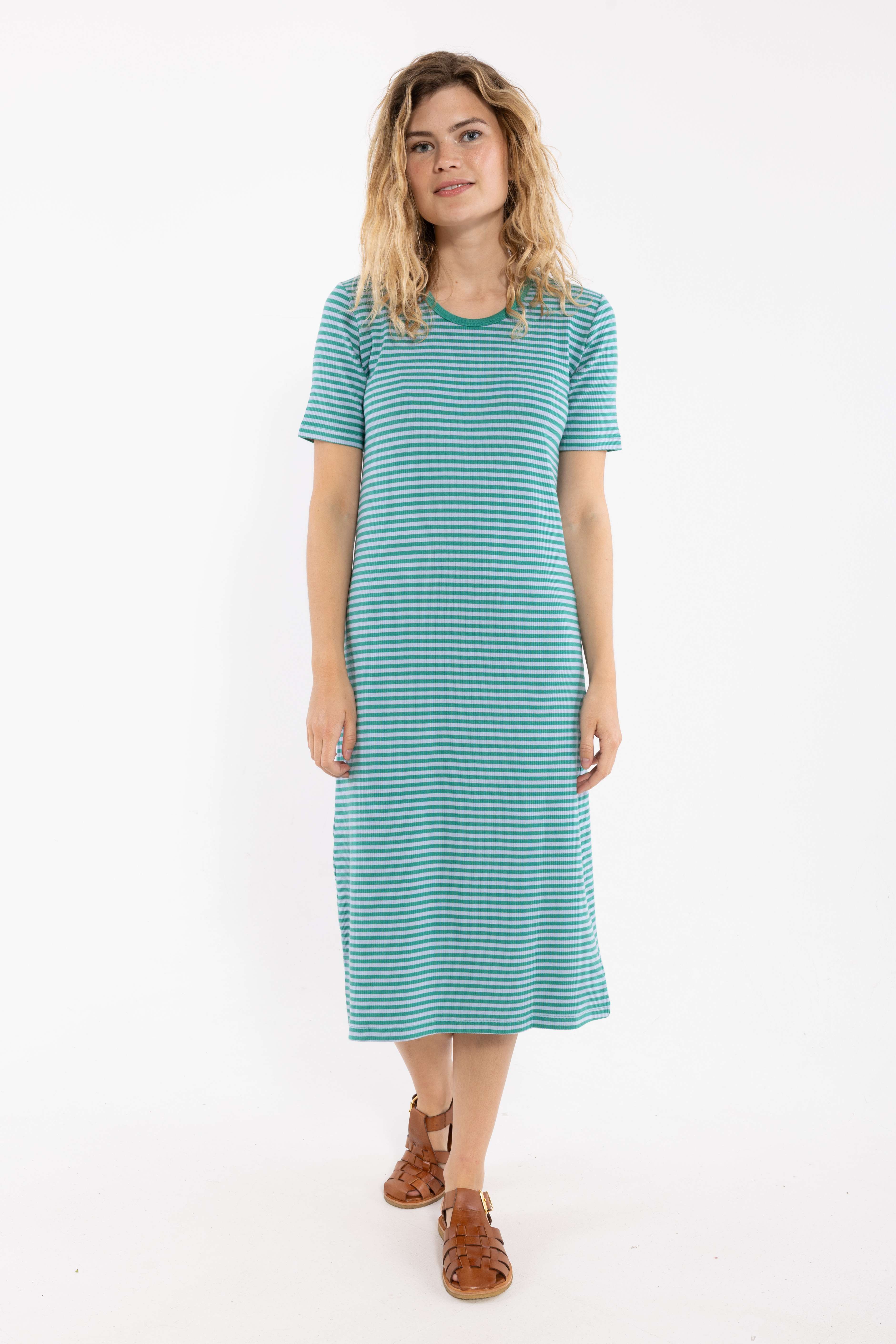 Wunderschönes, gestreiftes Maxikleid. Schlichter und eleganter Schnitt. Schöner Rippstrick aus... mehr