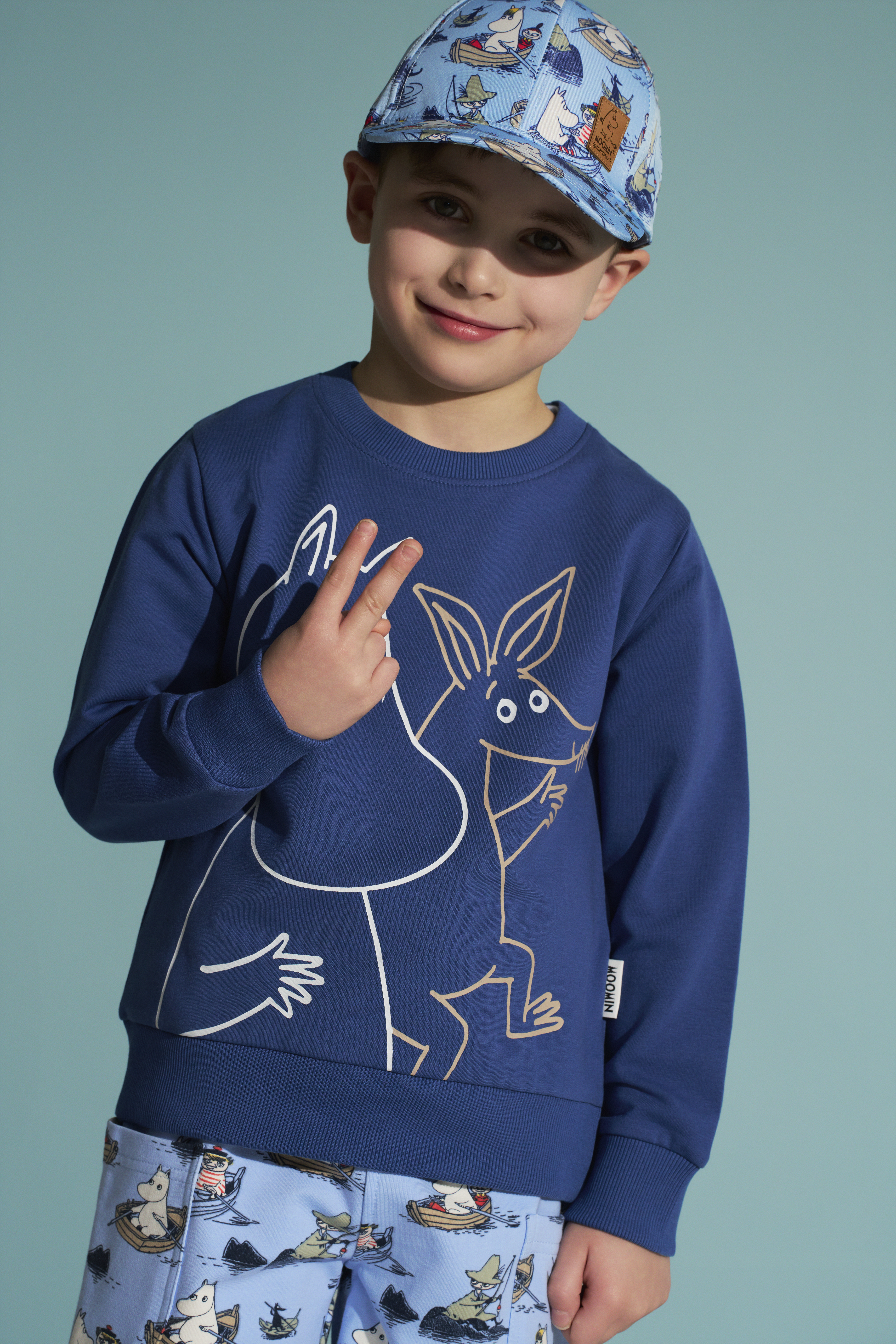 Das langärmelige Sweatshirt hat einem lustigen Silhouettenprint von Mumin und Sniff.