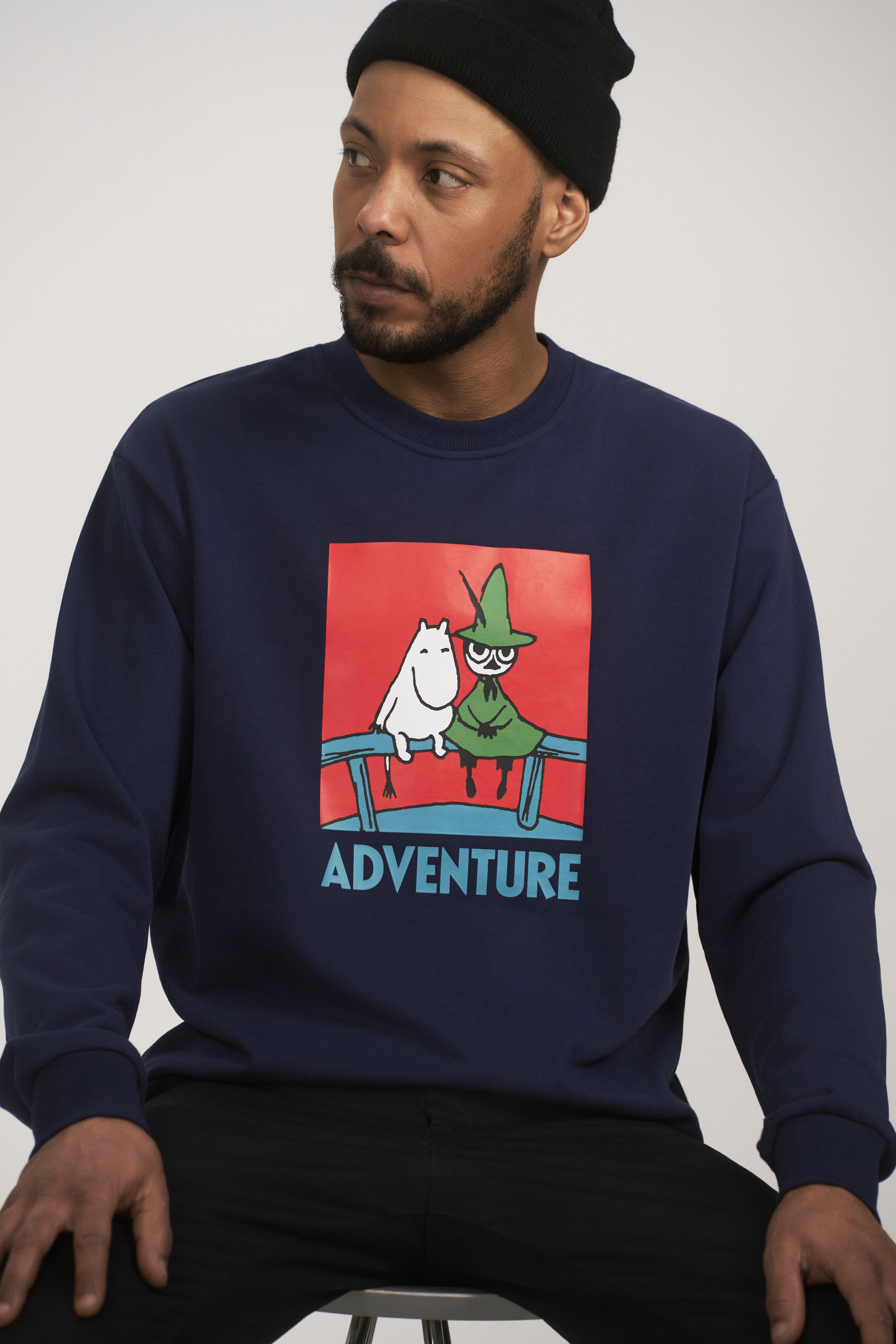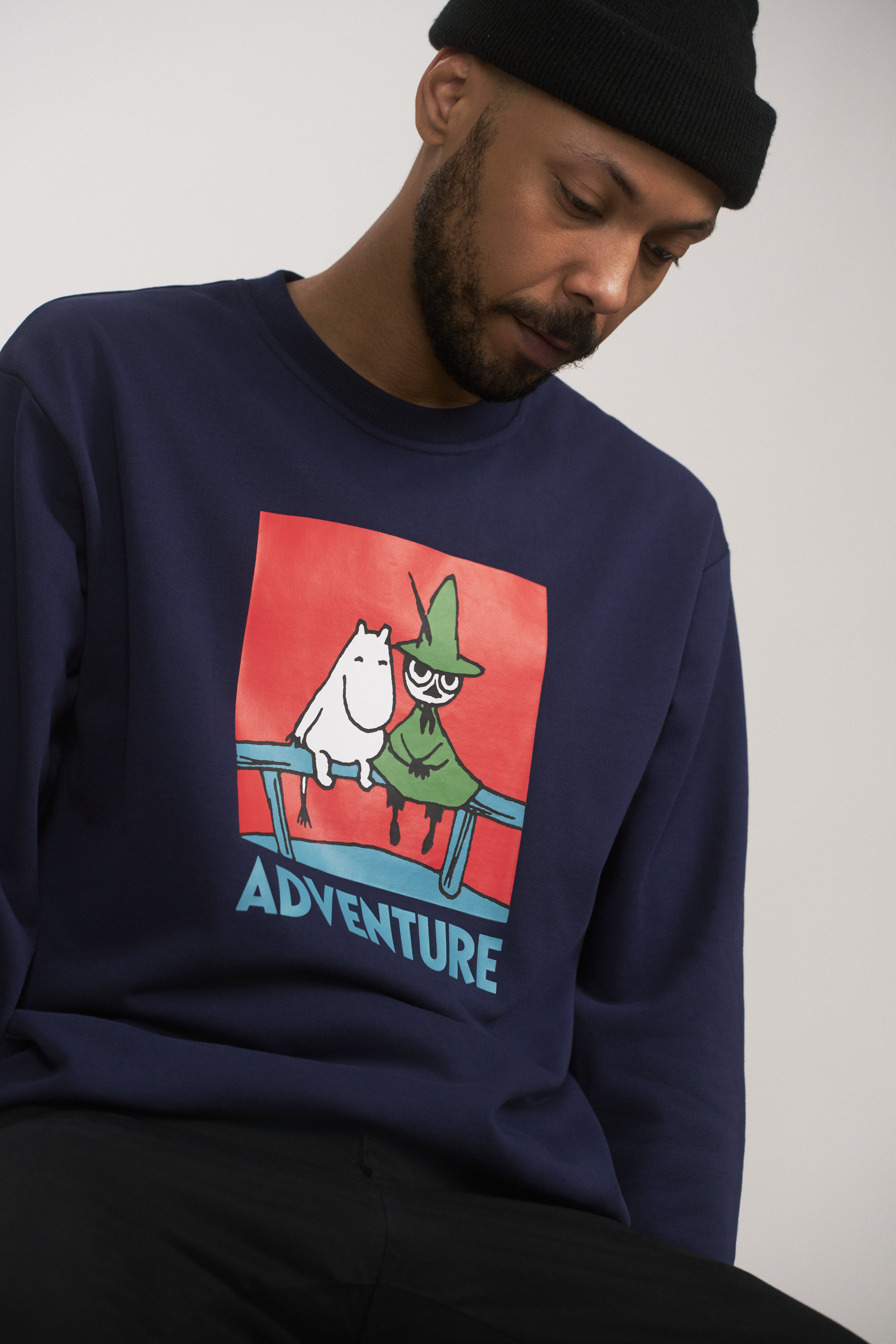 Cooler Mumin Pullover für Erwachsene mit retro Mumin-Motiv auf der Brust.