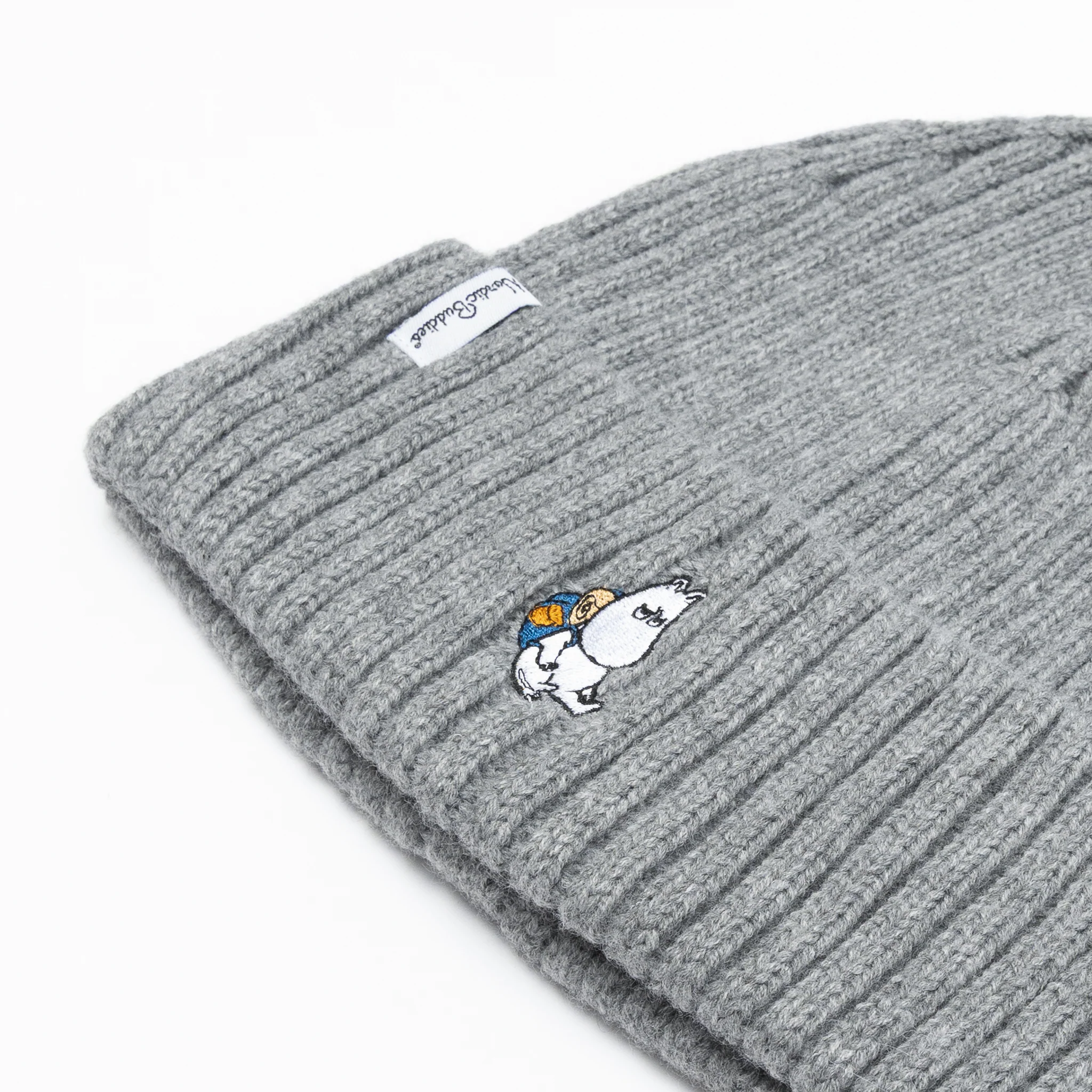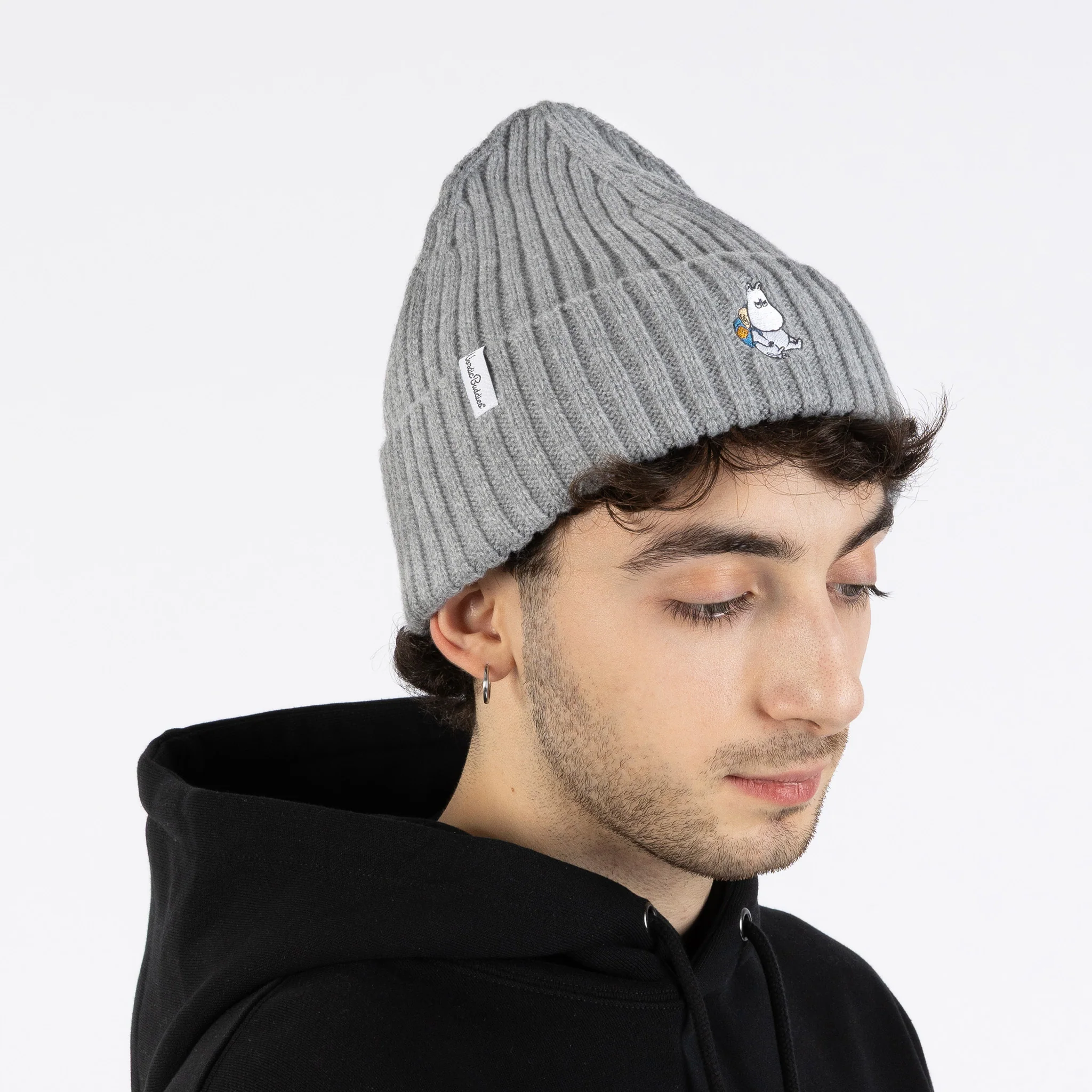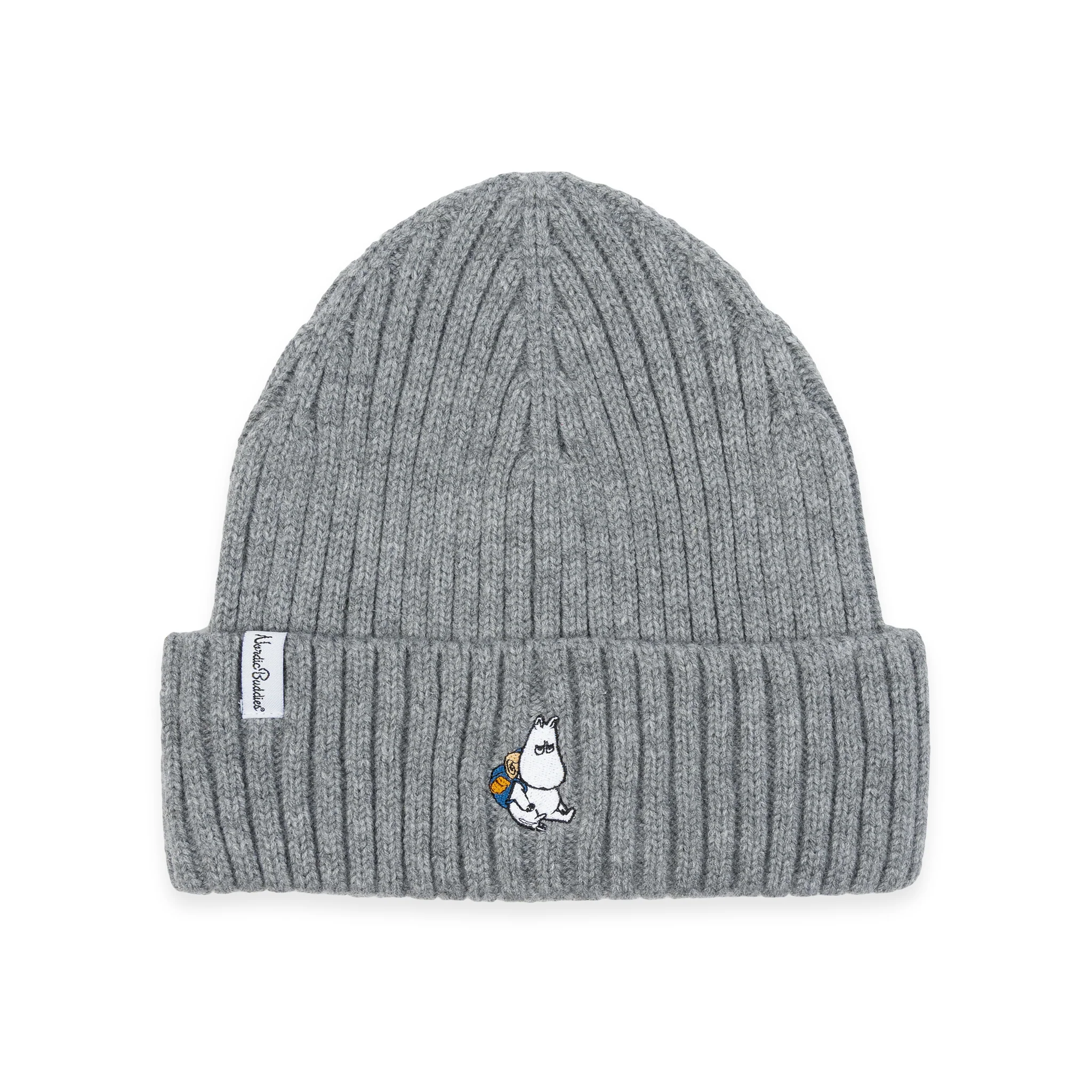 Für große Mumin-Fans! Coole und warme kuschelige Strickmütze für Erwachsene, oder Kinder ab ca 10 Jahre, in Grau mit Mumin-Stickerei. Einheitsgrösse, one size - Material: Recyceltes Polyester + Acryl - Pflege: Maschinenwäsche bei 30°C