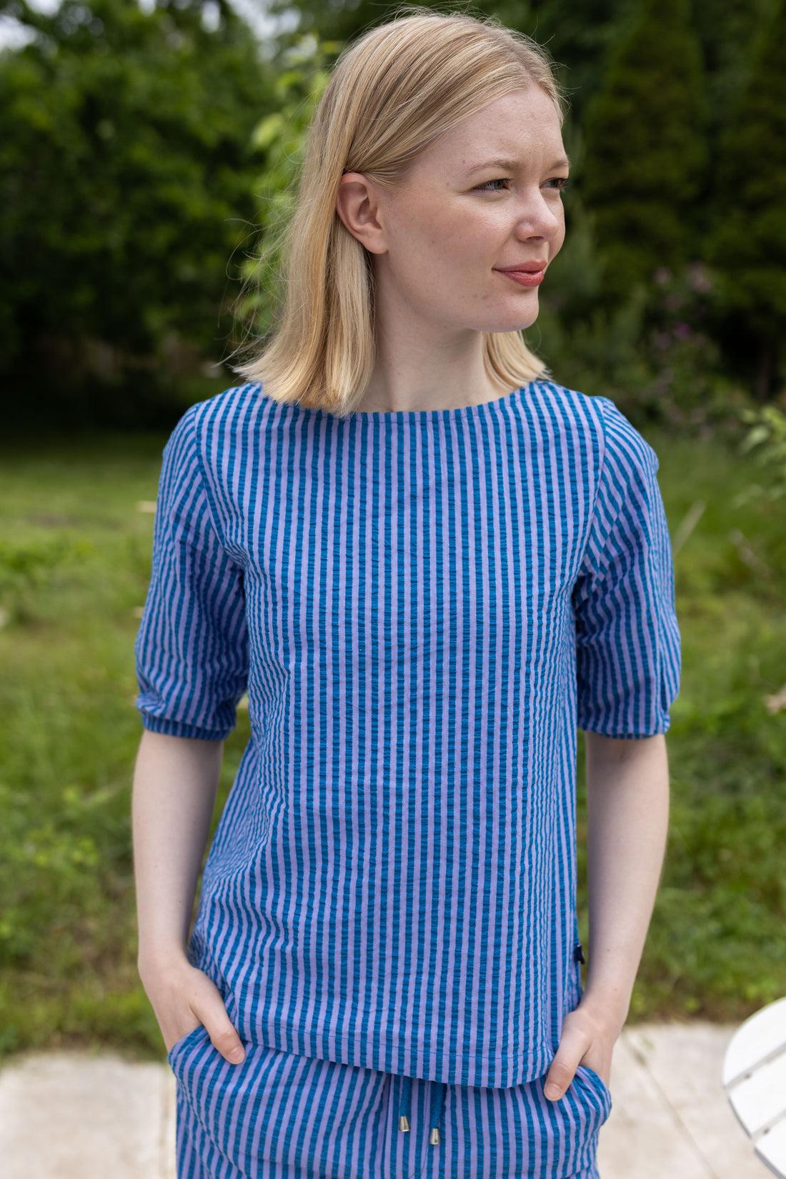 Bluse Seersucker Danecremant Blue/Light Lilac