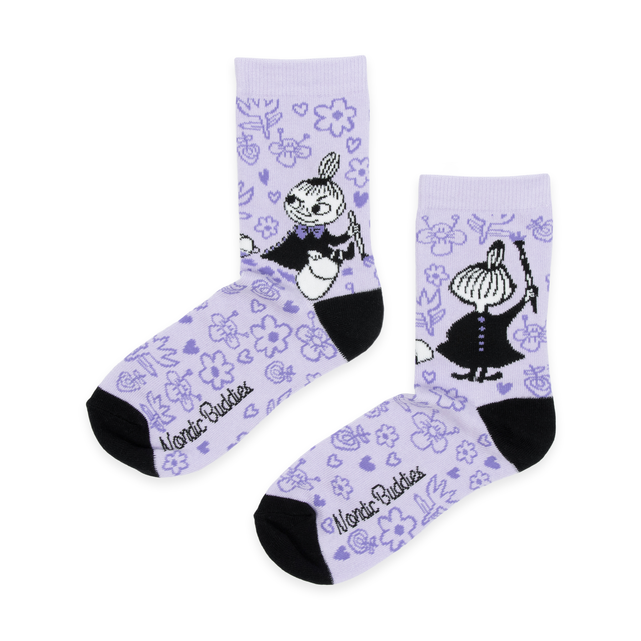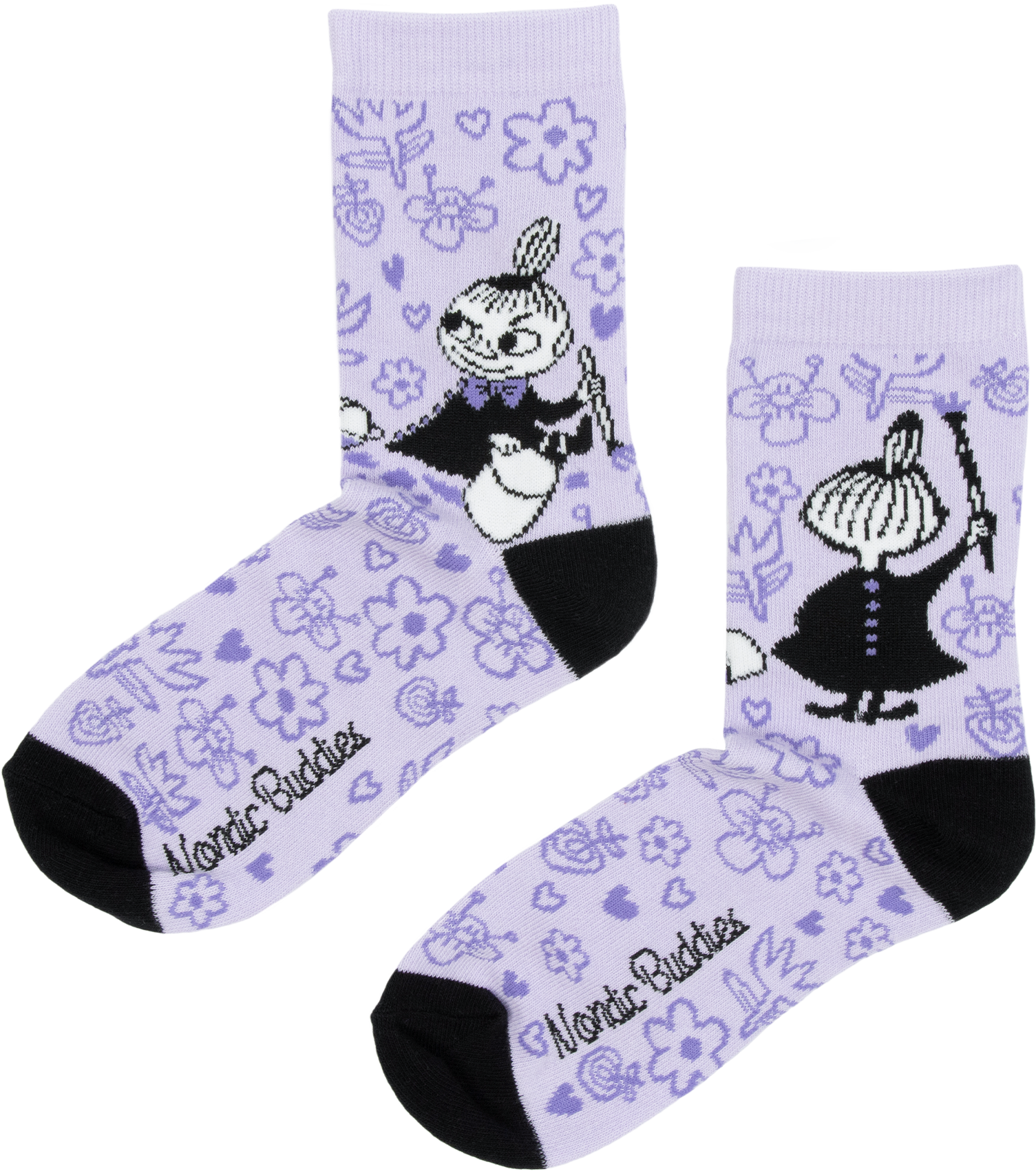 Süße Kleine My Socken in Lila mit blumigen Hintergrund.