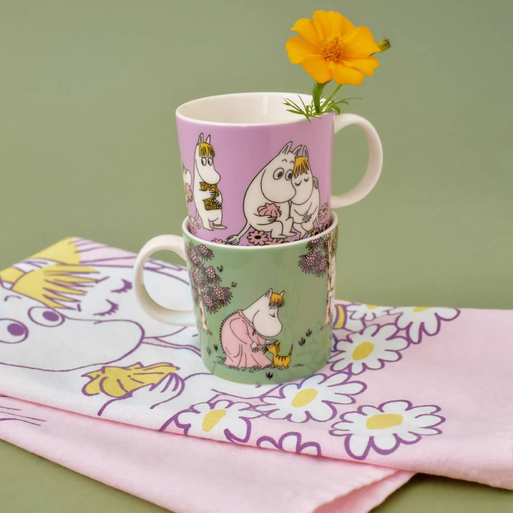 Der Becher der Kollektion „Loving Care“ verkörpert den Geist der Muminfamilie, in der Liebe und Fürsorge allen Wesen im Mumintal zuteilwerden.