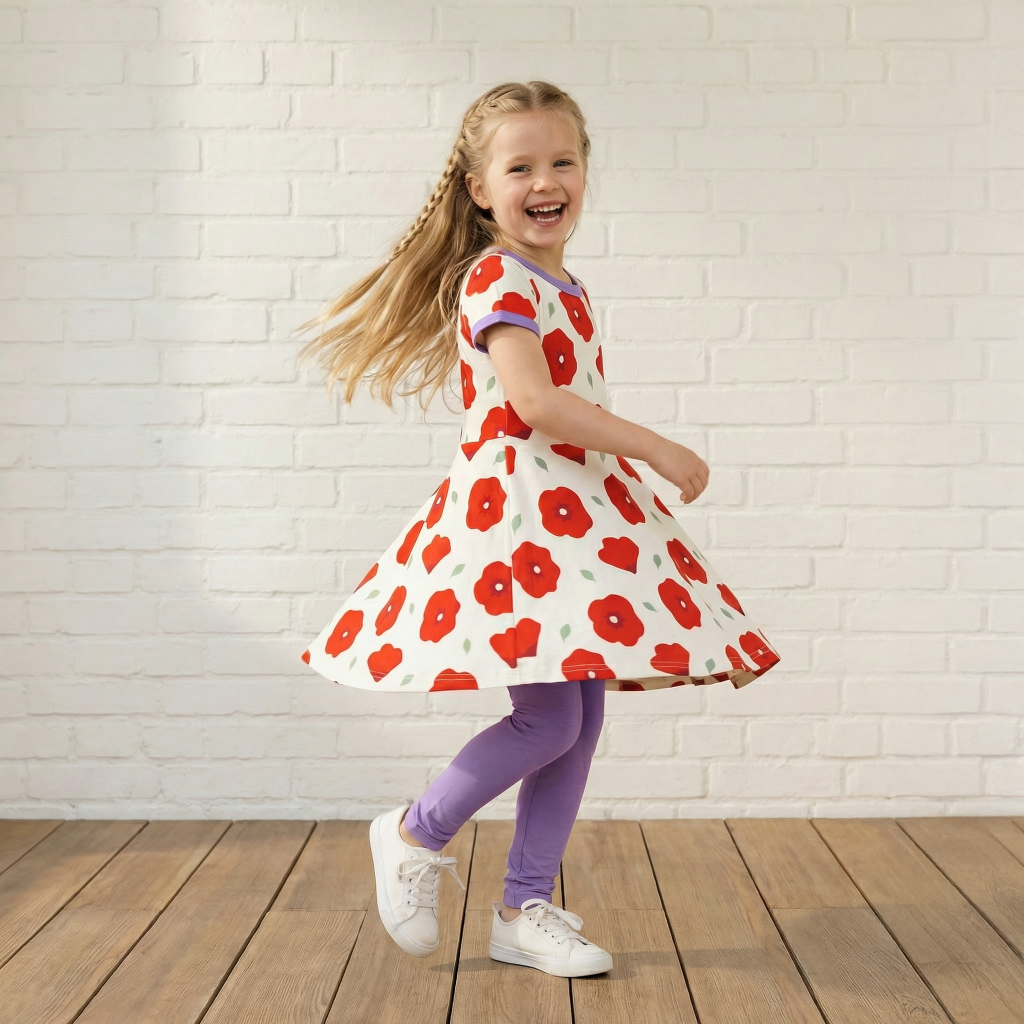 Kleid kurzarm Spin Poppy - Maxomorra