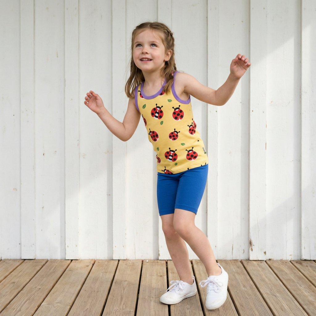 Diese gemütlichen Radlerhose aus Baumwolle (organic) in einem schönen Blau, wertet jedes Outfit ganz einfach auf und ist ein tolles Basic. Super bequem, perfekt für die Schule oder den Kindergarten; schwedische Mode bringt einfach jeden Tag gute Laune.