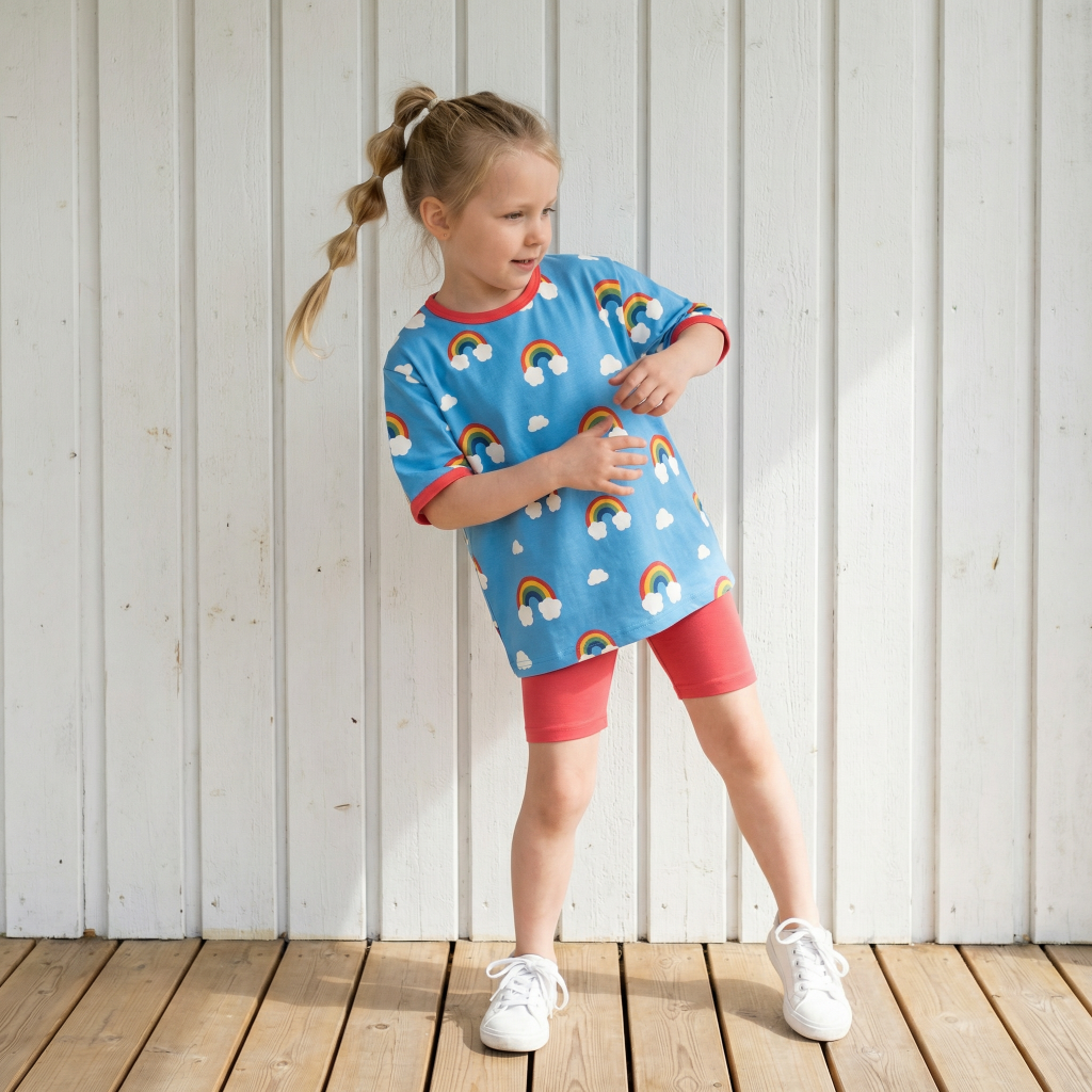 Diese gemütlichen Radlerhose aus Baumwolle (organic) in einem schönen Rot, wertet jedes Outfit ganz einfach auf und ist ein tolles Basic. Super bequem, perfekt für die Schule oder den Kindergarten; schwedische Mode bringt einfach jeden Tag gute Laune.