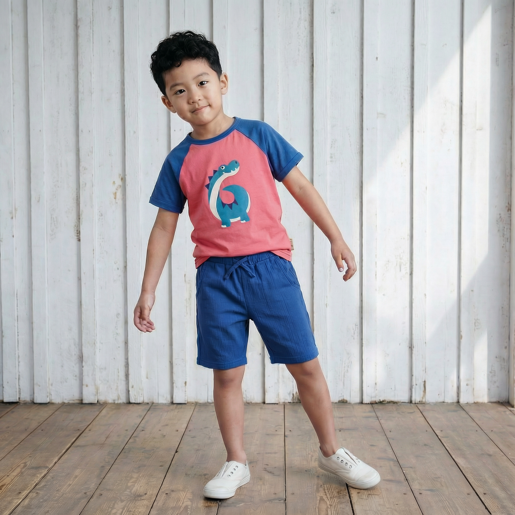 T-Shirt aus weicher Baumwolle (Bio kbA) mit der Zahl '6' in Form eines Dinos.