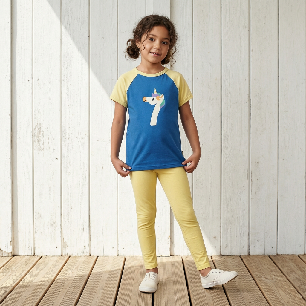 T-Shirt aus weicher Baumwolle (Bio kbA) mit der Zahl '7' in Form eines Einhorns.