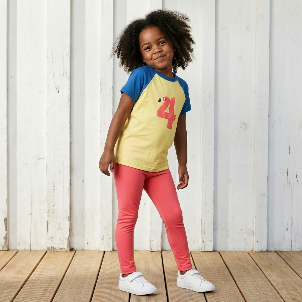 Fröhlich buntes Raglanshirt für den vierten Geburtstag.