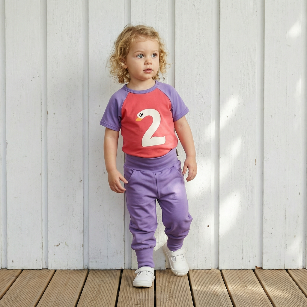 T-Shirt aus weicher Baumwolle (Bio kbA) mit der Zahl '2' in Form eines Schwans.