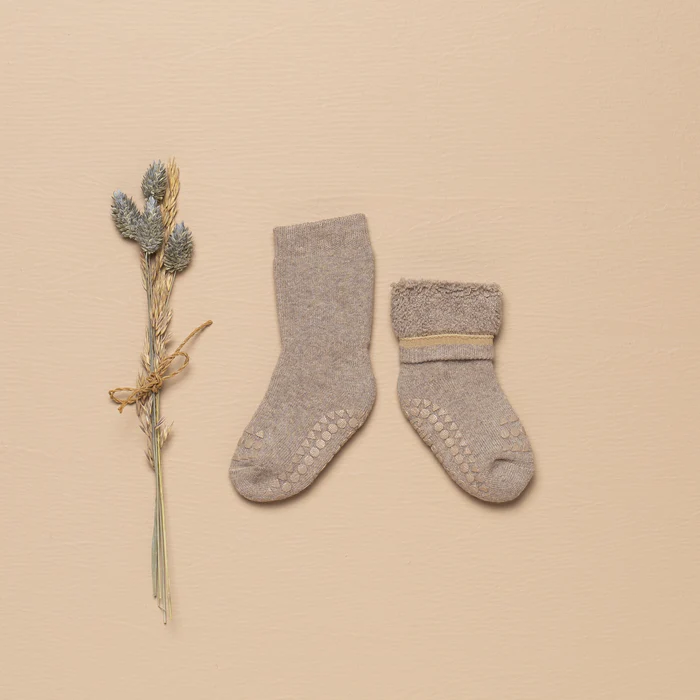 Die rutschfesten GoBabyGo Socken aus Bio-Frottee sind für Babys und Kleinkinder konzipiert, die gerne krabbeln, laufen und rennen, ohne auszurutschen. Diese Socken haben Gummipolster unter den Füßen und auf den Zehen, die ein Ausrutschen auf glatten Oberflächen verhindern. Die Socken halten die Füße deines Kindes warm und sicher, eignen sich daher perfekt als Hausschuhe für die Kindertagesstätte und bieten eine sicherere Alternative zu Schuhen mit harten Sohlen. Harte Sohlen können die natürliche Entwicklung kleiner Füße hemmen, weshalb wir unsere rutschfesten Socken empfehlen. Sie ermöglichen die richtige Entwicklung neugieriger kleiner Füße und sorgen gleichzeitig für Sicherheit und Komfort.