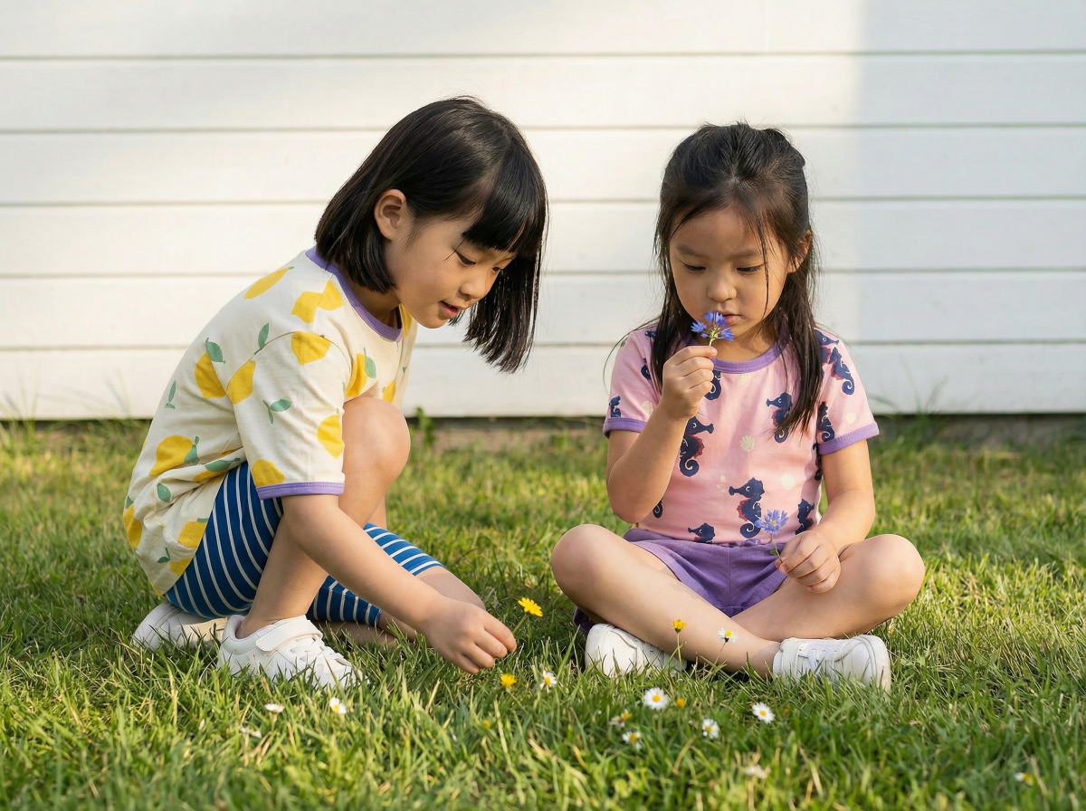 Fröhlich buntes T-Shirt für Kinder. Rosafarbenes Sommerorberteil aus weicher Baumwolle (Bio... mehr