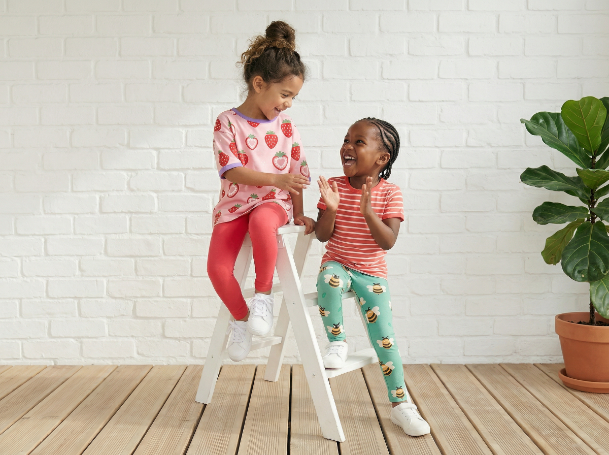 Fröhlich buntes Oversize T-Shirt für Kinder. Rosafarbenes Sommerorberteil aus weicher... mehr