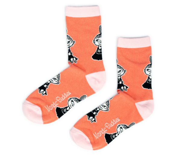 Coole orangefarbige Socken mit der kleine My für echte Mumin-Liebhaber.