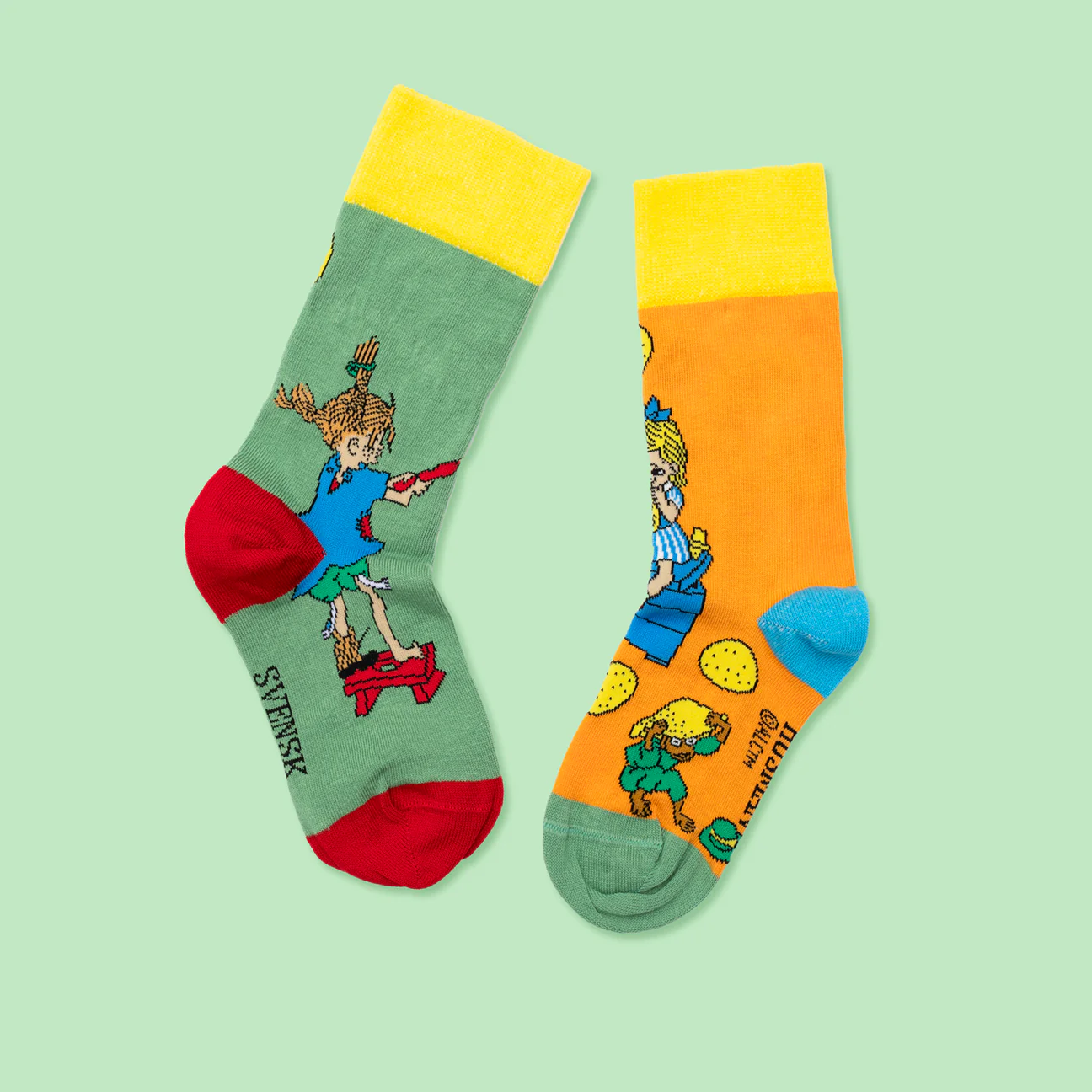 Wir nehmen dich mit in die kunterbunte Welt von Pippi Langstrumpf mit diesen fröhlichen Kindersocken aus Schweden.