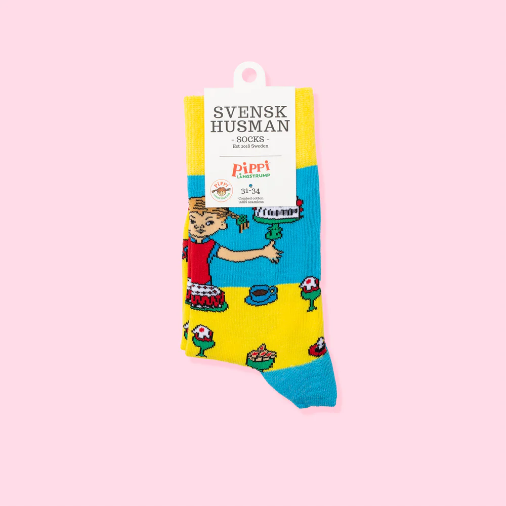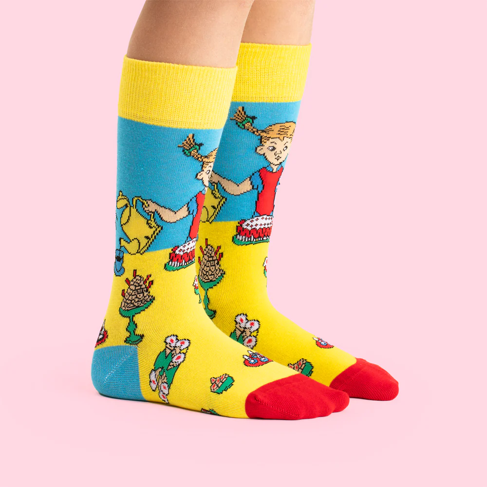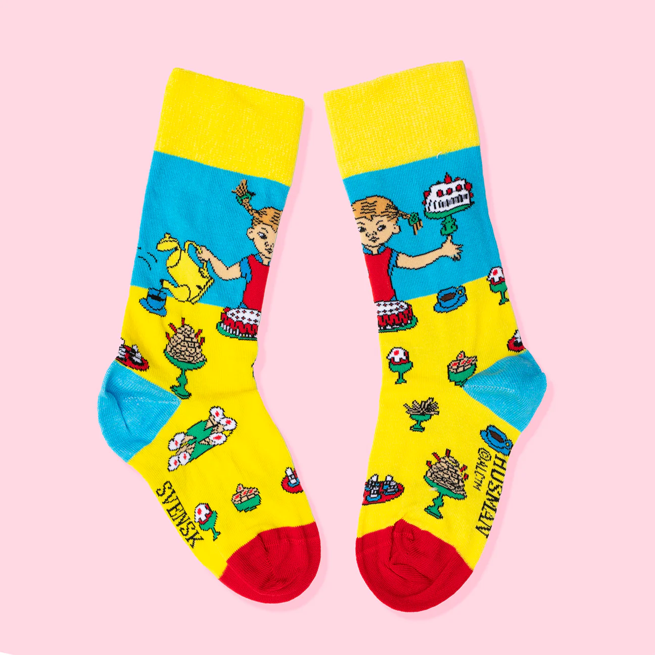 Wir nehmen dich mit in die kunterbunte Welt von Pippi Langstrumpf mit diesen fröhlichen Kindersocken aus Schweden.