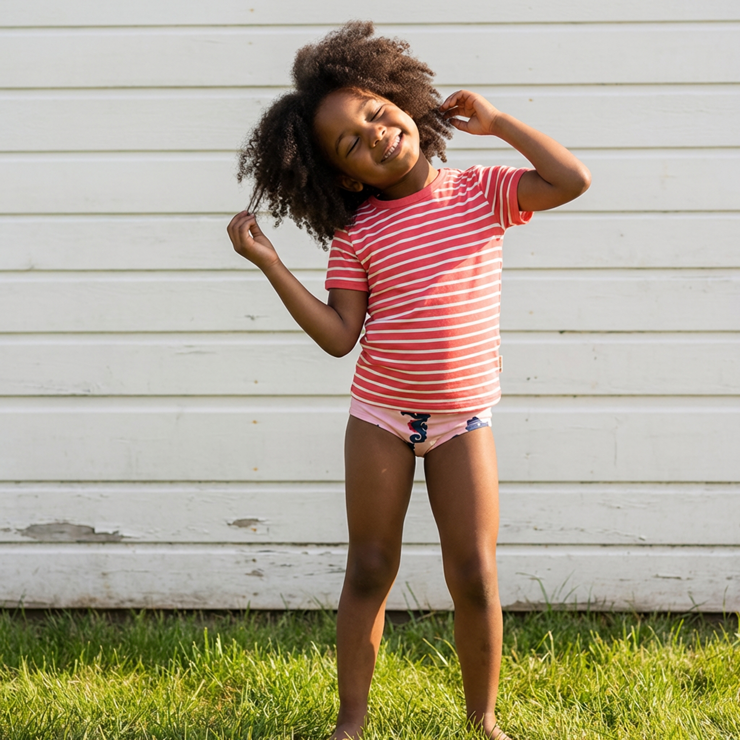 Bequeme Kinderunterhose aus weicher Baumwolle (organic) mit Seepferdchen-Print. Die Unterhose sitzt perfekt, ist wunderbar bequem und läßt durch die Baumwolle die Haut atmen. Das Material ist besonders hautfreundlich, frei von giftigen Farbstoffen und bestens für empfindliche Haut geeignet - perfekt, da Unterwäsche direkt auf der Haut getragen wird.