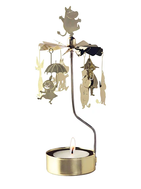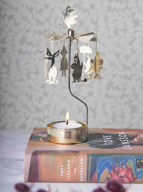 Tanzende Mumin Familie im Kerzenschein! Sobald das Teelicht brennt, drehen sich die Mumin-Figuren und werfen schöne Schatten an die Wände. Dieses Engelspiel verzaubert nicht nur Muminfans!