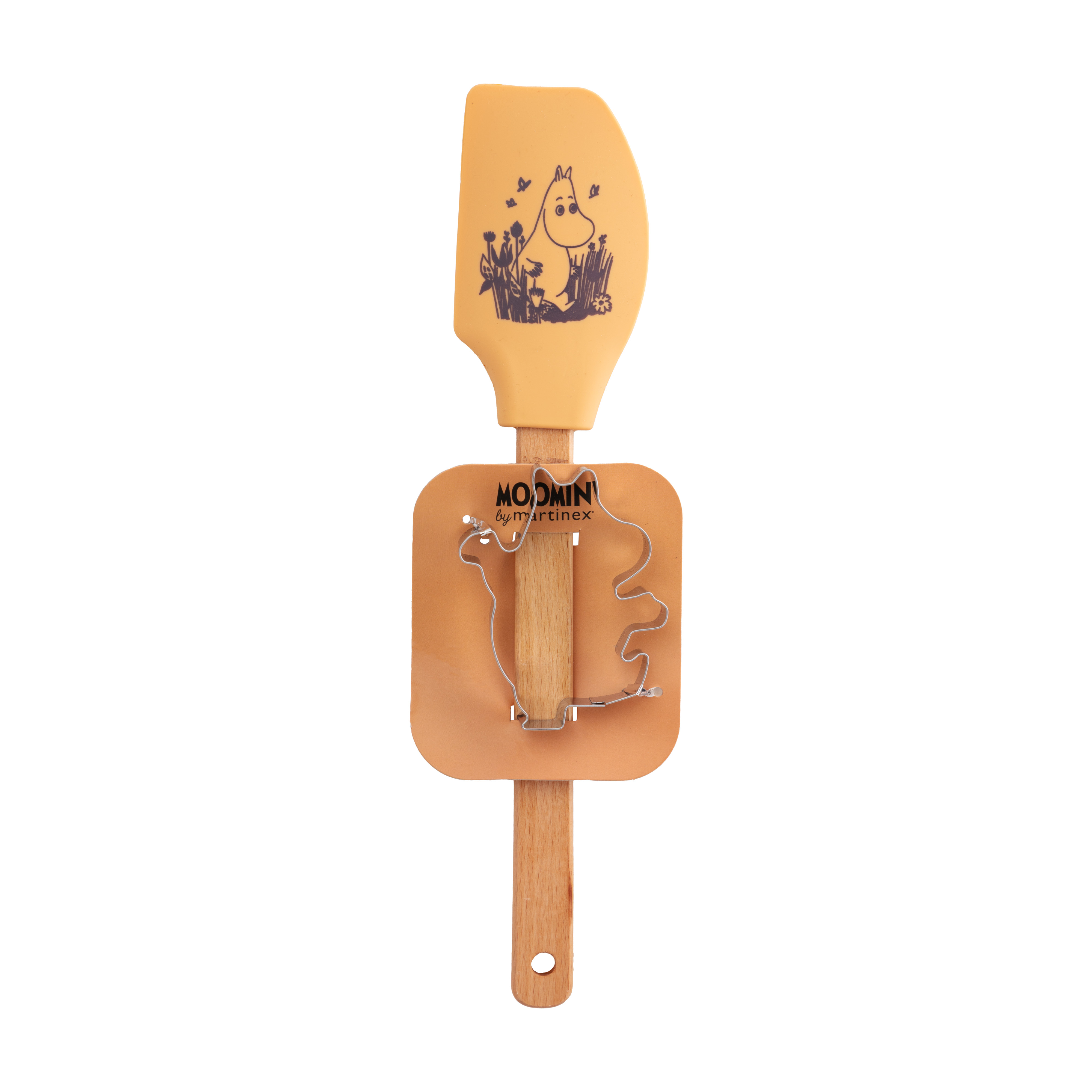 Dieses wunderschöne Backset enthält einen Silikonspachtel und einen Ausstecher in Muminform. Der Teigscharber ist 30 cm lang, hat einen Holzgriff und ist mit einem fröhlichen Mumin-Motiv verziert. Die Plätzchenausstecher ist ebenfalls in Mumin-Form gestaltet.