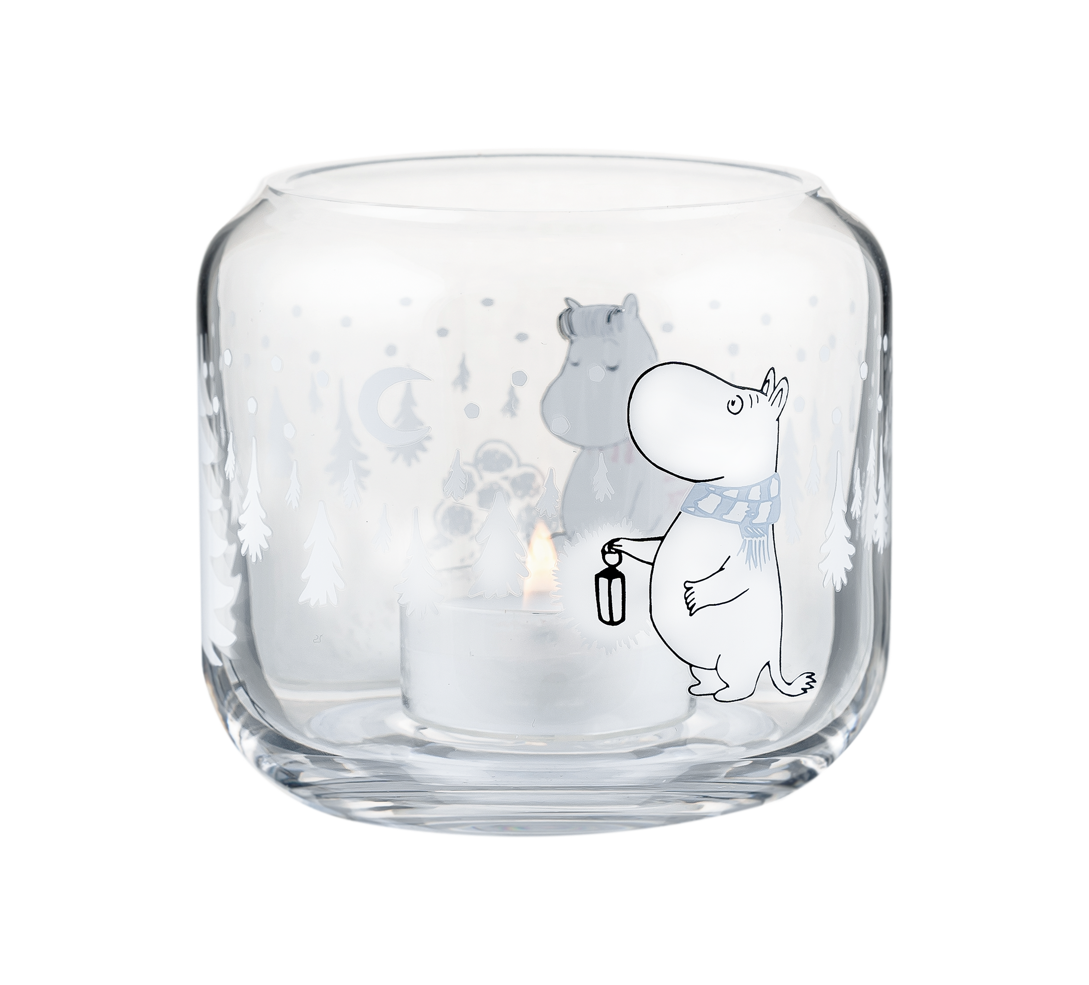 Wunderschöner Kerzenständer mit winterlichem Muminmotiv.
